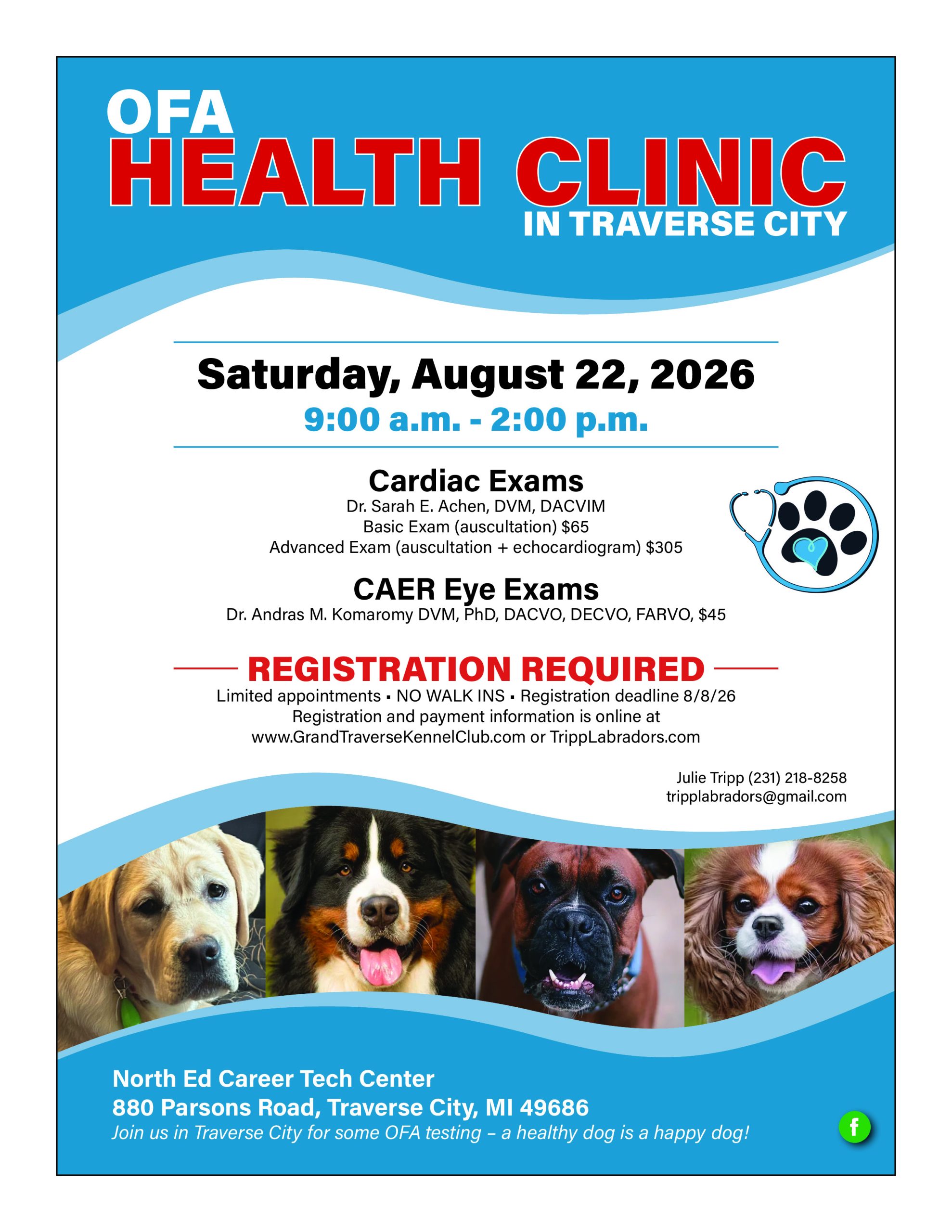 Registration and Full Payment for the August 22, 2026 Health Clinic is required by August 8th via Venmo, PayPal, or mailed check to Julie Tripp. An automated confirmation email will be sent once the registration form is submitted.